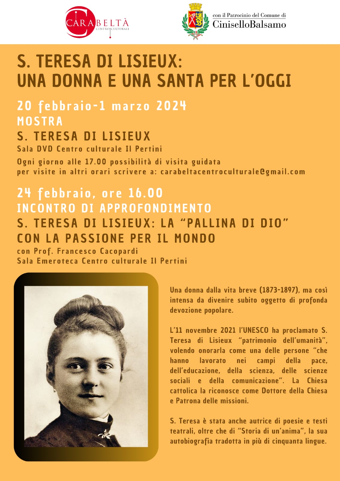 Generale 20/02-01/03/2024 – Santa Teresa di Lisieux: una donna e una santa per l’oggi Pubblicato 15/02/2024 Visualizzazioni: 331 Condividi questo contenuto