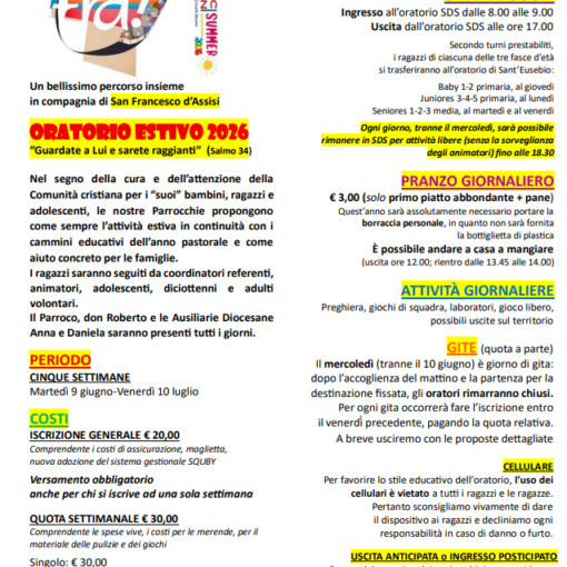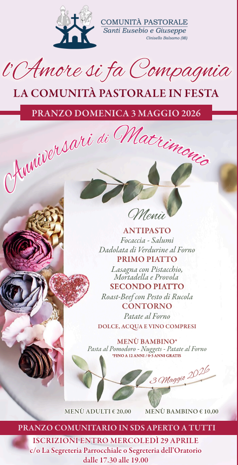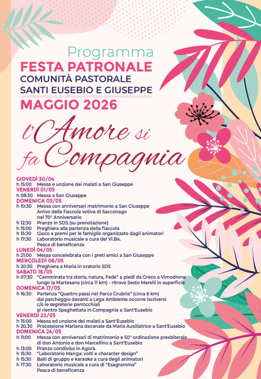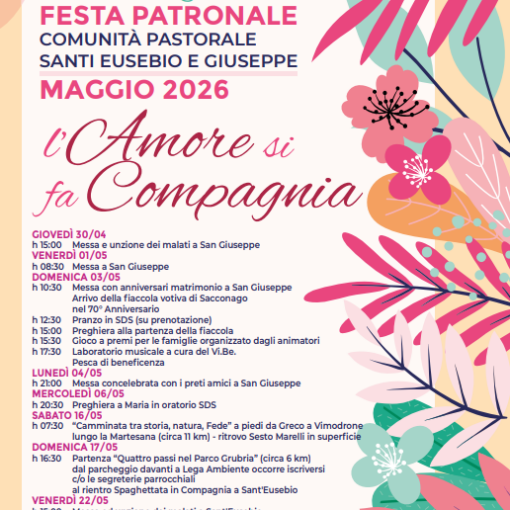 Pubblicato 27/03/2026 LAUDATO SI’ – DALLA SPERANZA ALL’AZIONE – MARTEDI’ 14 APRILE 21:00 ORATORIO SAN LUIGI VIA FIUME Visualizzazioni: 118 Condividi questo contenuto