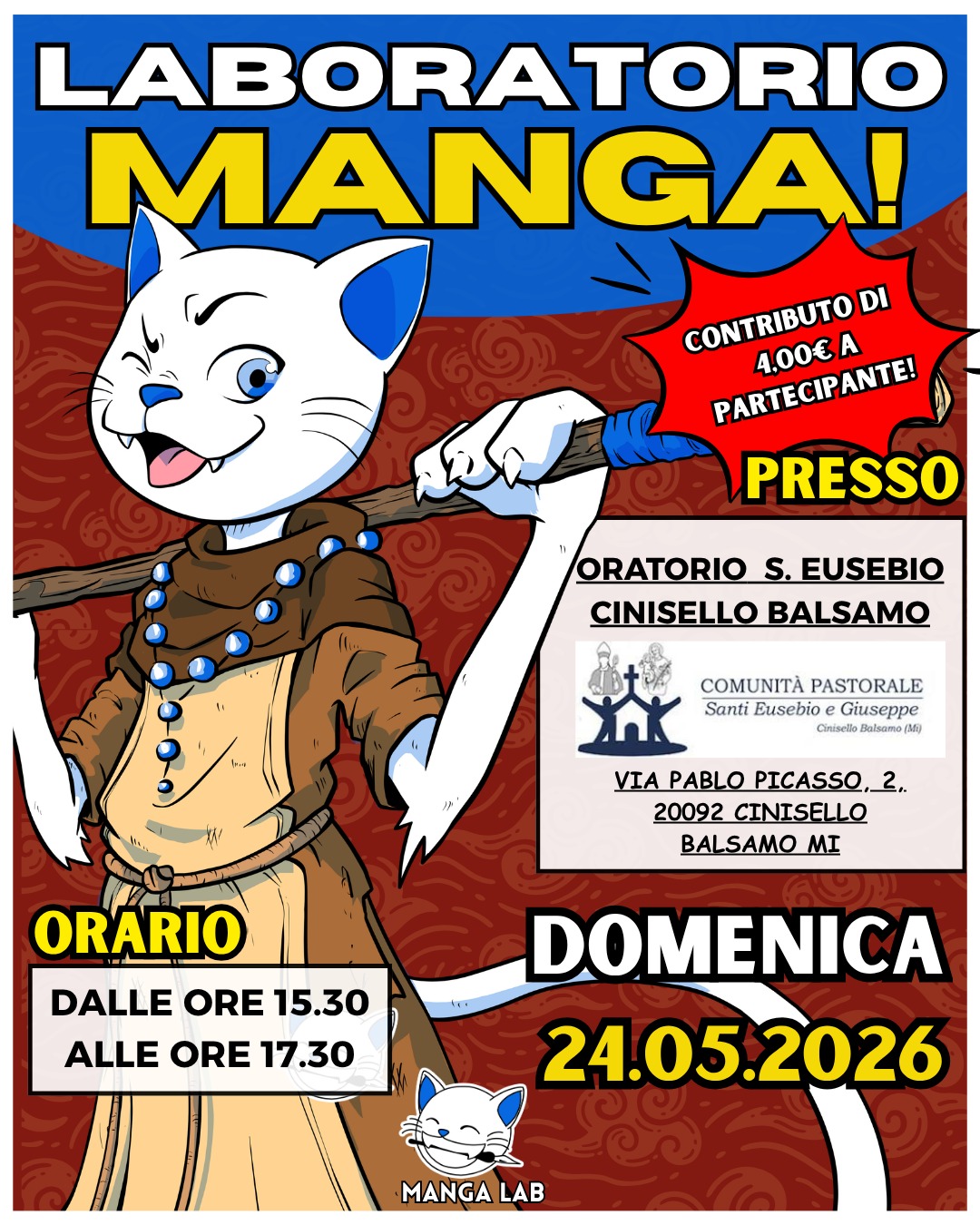 Prossimi eventi 24/05/2026 – A S.EUSEBIO LABORATORIO MANGA Pubblicato 17/04/2026 Visualizzazioni: 13 Condividi questo contenuto